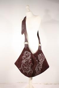 Suedemade, lushly embroidered FairyBag, lined with a beautiful colorcoordinated fabriclining and one insidepocket, the perfekt everyday bag for everyone who, like myself feels the need to carry half its lofe in ones shoulderbag, you will surely love this one, i know- i do! Hight ca. 45cm!