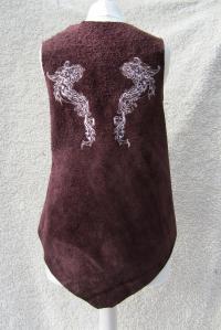 Stunning Suede Waistcoat with amazing embroidery on the fraont and back. Surely the elegant wingshaped ornaments on the back are an absolute eyecatcher!